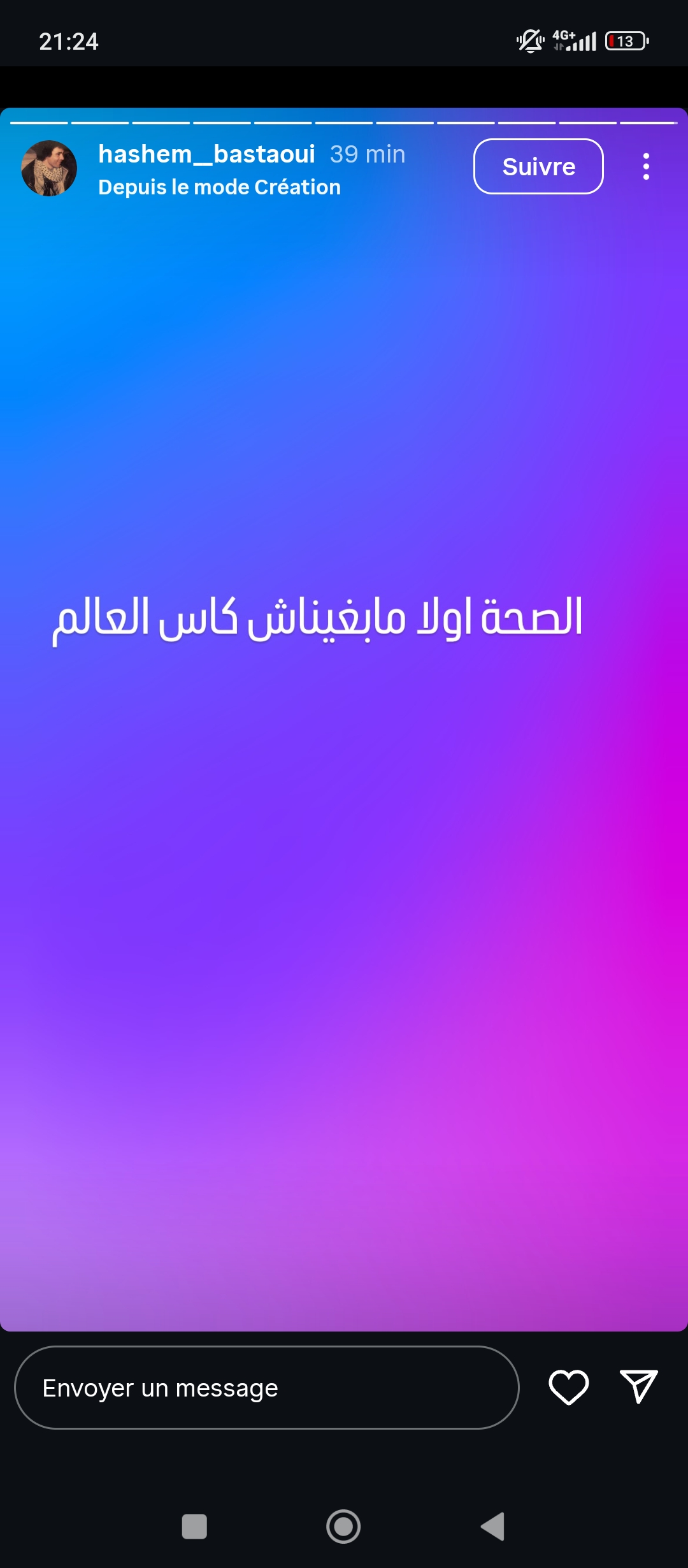 تفاعل الفنان المعتزل هاشم بسطاوي بقوة مع احتجاجات شباب "جيل زيد" على تردي الخدمات الصحية في عدد من مستشفيات المملكة، من خلال سلسلة تدوينات نشرها على حسابه بالإنستغرام، جاء أبرزها: "الصحة أولا مابغيناش كأس العالم".