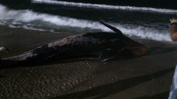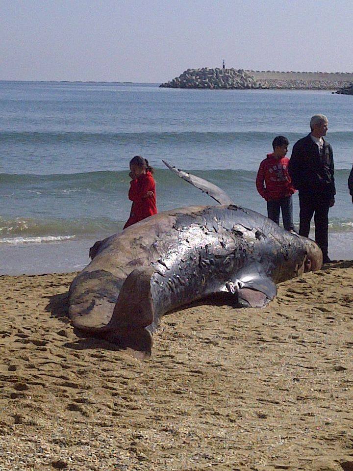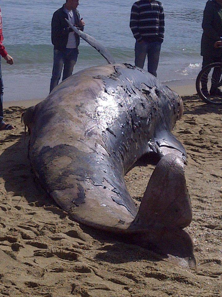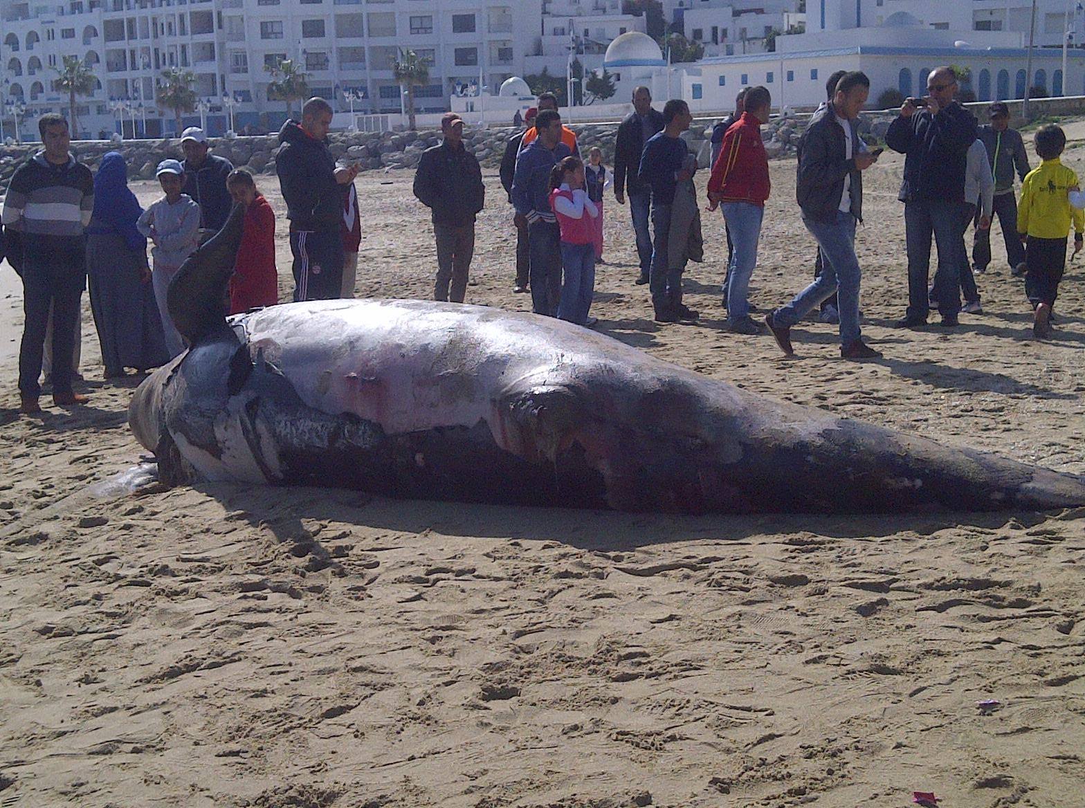 بالصور: شاطئ المضيق يلفظ حوت "الأوركا" و يخلق الحدث بين سكان المنطقة