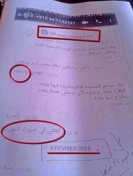 الجديد هذا اليوم، تسريب آخر، لمحادثة يقال أنها دارت عبر " الواتساب " بين بوعشرين و سيدة لم يتم الإفصاح عن هويتها، الأخير بعثت له بلاغا من أجل نشره، غير أن سياق الحديث بين الطرفين، تحول من المهني إلى اللاأخلاقي، بعدما طالبها "بوعشرين" ، حسب التسريب المزعوم، بموافاته بصورها المثيرة ( الصورة ):
