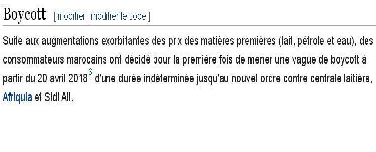و كتب الموقع العالمي أنه "في أعقاب الزيادات الباهظة في أسعار المواد الأولية (الحليب والنفط والماء) ، قرر المستهلكون المغاربة لأول مرة تدشين حملة مقاطعة منذ 20 أبريل 2018 و الى أجل غير مسمى ، ضد منتجات شركات حليب سنطرال و أفريقيا وسيدي علي".