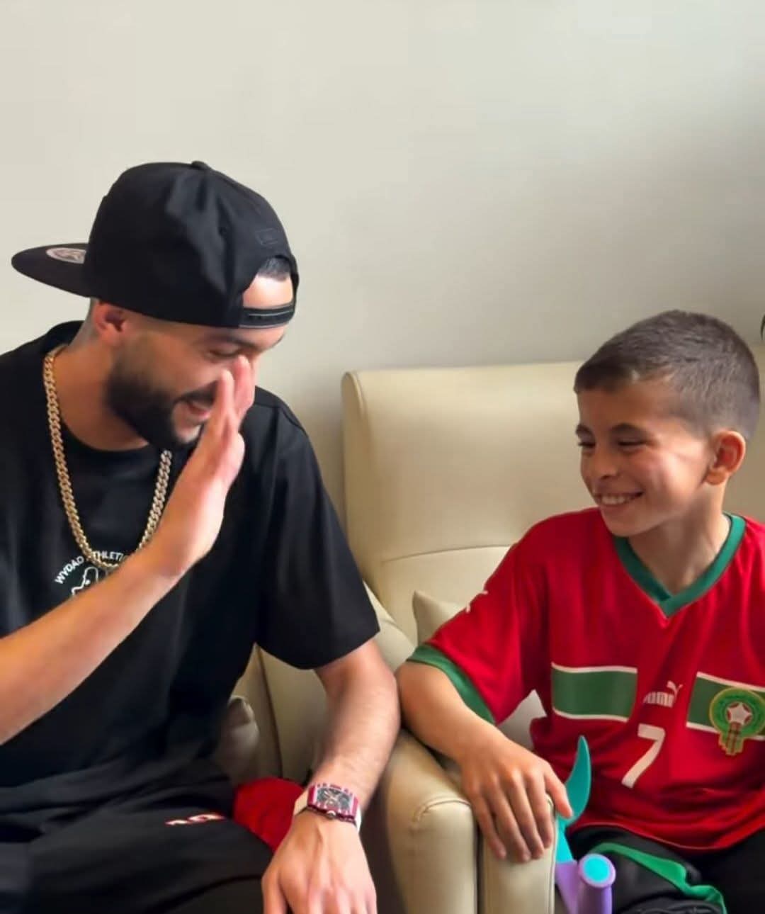 وعاش الطفل يونس لحظات مفعمة بالمشاعر والتأثر وهو يلتقي بزياش ومكونات الفريق الودادي قبل ساعات من انطلاق المباراة الحاسمة، في خطوة تعكس البعد الإنساني العميق للرياضة وتؤكد ارتباط النجوم بجماهيرهم من مختلف الفئات.
