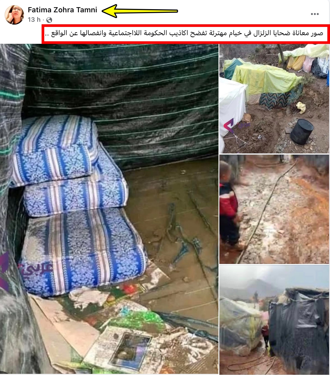 في ذات السياق، تناقل رواد مواقع التواصل الاجتماعي خلال الساعات الماضية، مقاطع فيديو صادمة، توثق لحجم المعاناة الكبيرة التي يتكبدها المتضررين من زلزال الحوز داخل خيام بلاستيكية. أطفال صغار يئنون من قساوة البرد، ونساء تصرخ طمعا في تدخل حكومي ينتشلهم من هذه الأوضاع اللاإنسانية، وعجزة، نظرات أعينهم تحكي كل شيء.. كلها مشاهد مؤلمة حركت غضبا واسعا بين المغاربة، وسط استنكار شديد لغياب أي رد فعل من قبل الحكومة.