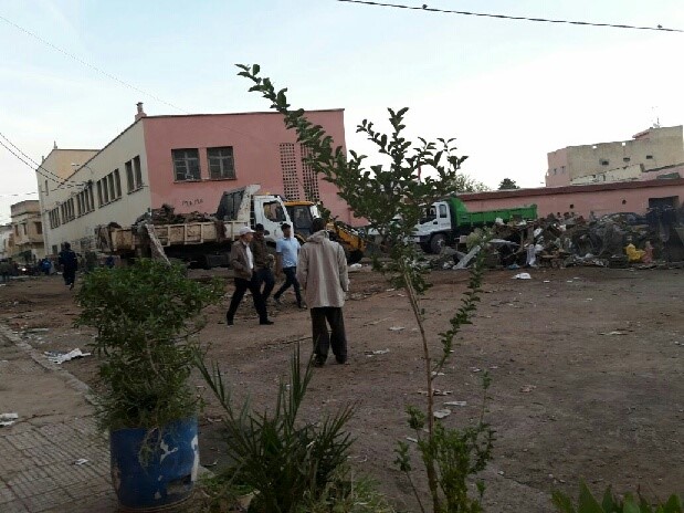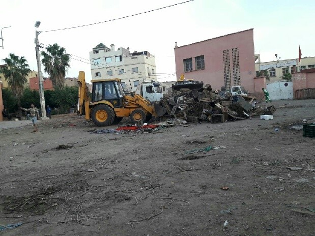 سلطات بني ملال تستعين بالقوات العمومية و تحرر محيط مدرسة و تهدم خيام تجار الخضر والفواكه