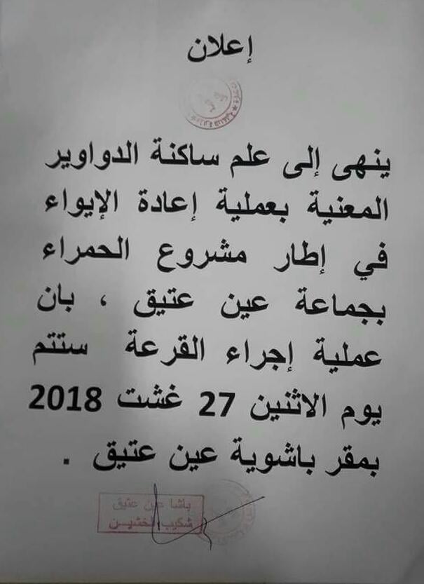 بعد أن أشرنا في موضوع سابق، أن قوات الأمن العمومية تدخلت قبل ساعات لمنع مسيرة احتجاجية حاشدة، كانت متجهة صوب القصر الملكي بالصخيرات، ضمت عشرات من سكان دور الصفيح بجماعة عين عتيق ضواحي تمارة، كان منظموها يمنون النفس بإيصال صوتهم ورفع تظلمهم إلى جلالة الملك، عقب سلسلة من الوعود التي قدمها لهم رئيس المجلس بمعية السلطات المحلية، بشأن ملف إعادة إيوائهم، أفادت مصادر مؤكدة أنه وبتعليمات من السيد يونس قاسمي، عامل إقليم الصخيرات - تمارة، دخل كل من رئيس قسم الشؤون الداخلية للعمالة، السيد رشيد التاقي، بمعية القائد الجهوي للدرك الملكي، الكولونيل بنداود و باشا الجماعة السيد شكيب الخشين، وكذا المندوبة الإقليمية للعمران - دخل - على خط القضية، حيث باشروا بموقع الإحتجاج حوارا جادا ومسؤولا مع المتضررين، أفضى إلى العدول عن فكرة التوجه صوب القصر الملكي بالصخيرات، و تعليق المسيرة، بعد أن تم التوصل إلى اتفاق لقي ترحيبا كبيرا من قبل المحتجين، حيث تم تحديد الـ 27 من شهر غشت الجاري، كأجل قانوني لسحب قرعة المستفيدين من البقع المخصص لإعادة قاطني دور الصفيح ( الوثيقة ).
