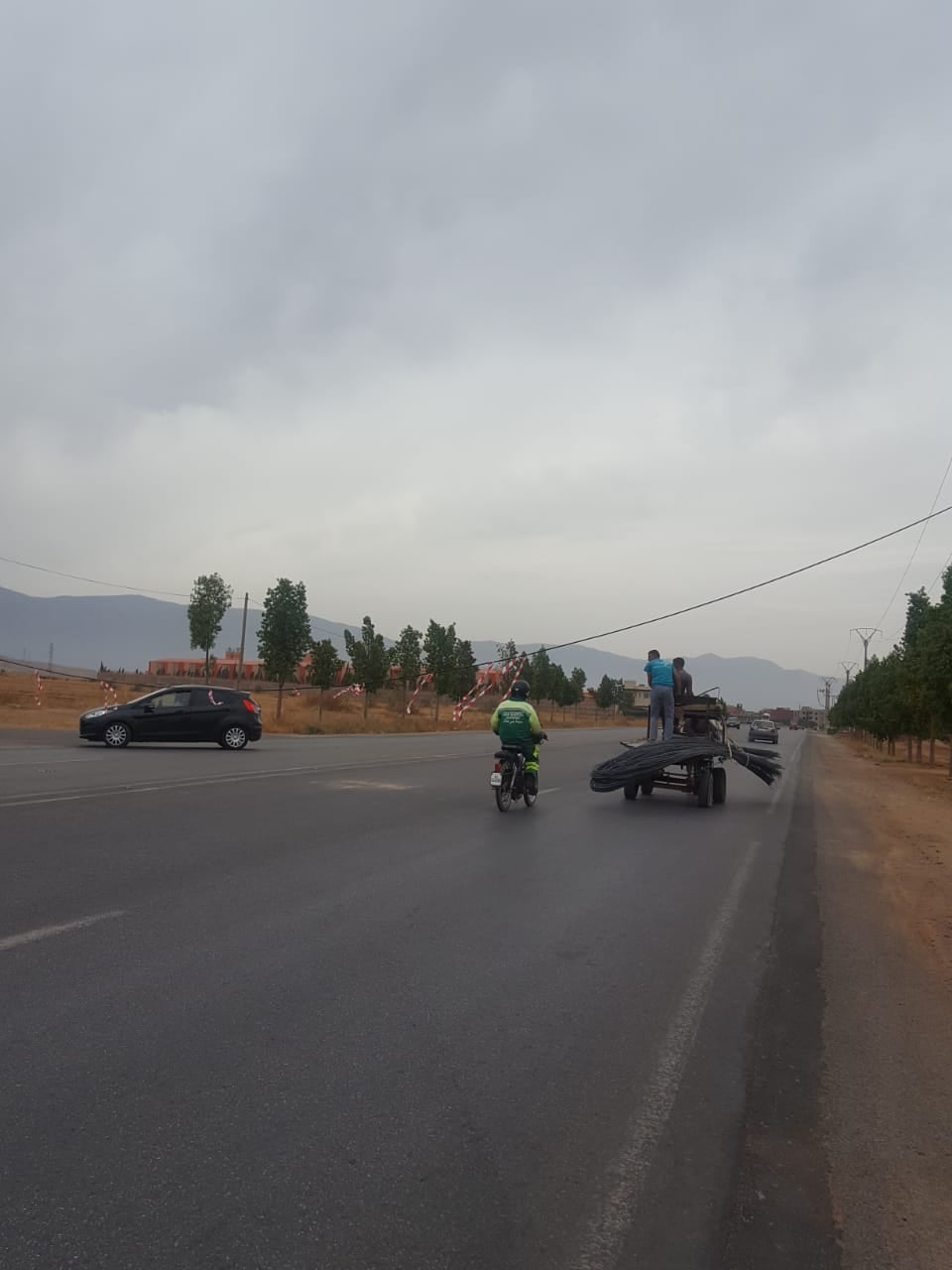 غريب أمر بعض السائقين المغاربة ، فمساء أمس قام صاحب شاحنة بحمل شجرة ضخمة والسير بها بالطريق الوطنية رقم 8 في مغامرة خطيرة غير محسوبة العواقب ، حيث اصطدمت الشجرة بالأسلاك الكهربائية المتواجدة بمدخل بني ملال ، بالقرب من المنطقة الصناعية،وأسقطت سلكا كهربائيا ،فواصل السائق السير وكأن شيئا لم يكن في استهتار واضح بأرواح المواطنين.