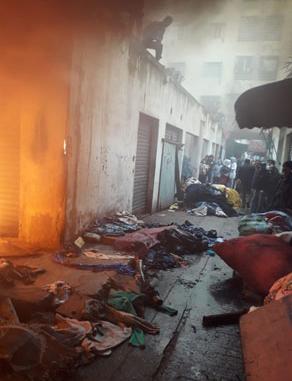 شب حريق، صباح اليوم الأحد، في محلات لبيع الملابس القديمة "البال" في حي عمر بن الخطاب في الدار البيضاء.
