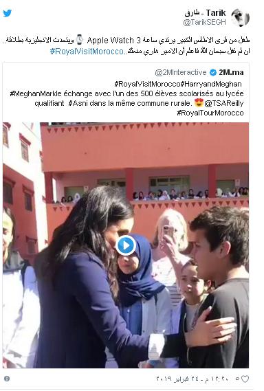 الامر الذي لفت انتباه نشطاء على مواقع التواصل ، هو تبادل الأميرة ميغان أطراف الحديث مع أحد التلاميذ الذي كان يرتدي ساعة أكدوا أنها من نوع (Apple Watch 3 ) ويتحدث الانجليزية بطلاقة.