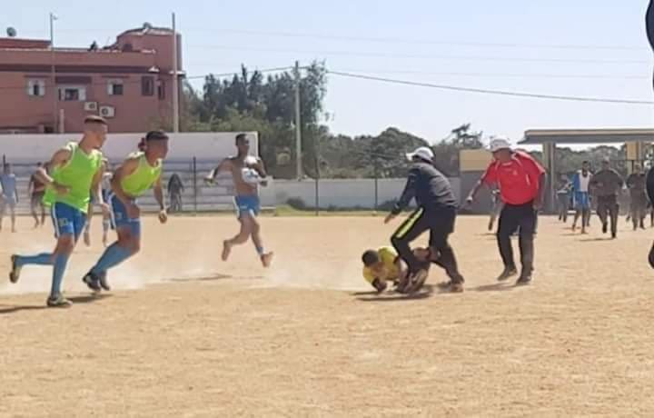 حولوه الى كرة قدم..اعتداء وحشي على حكم في مباراة بين فريقين مغربيين (صور)