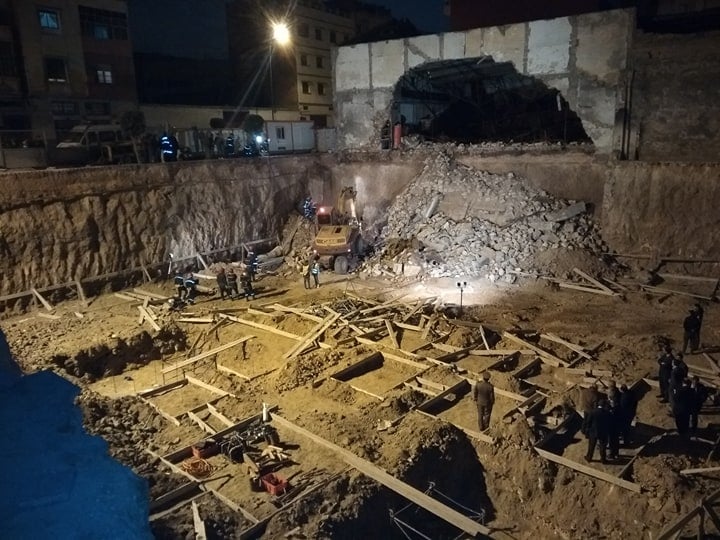 و كانت عمليات الانقاد قد تواصلت لعدة ساعات ، من أجل استخراج جثتي العاملين المدفونتين تحت الأنقاض إثر انهيار السور الخارجي لأحد المصانع المهجورة ، المجاور لورش بناء عمارة ، يقع بملتقى شارع "لاجيروند" وزنقة "خزامة"، بعمالة مقاطعات الفداء – مرس السلطان.