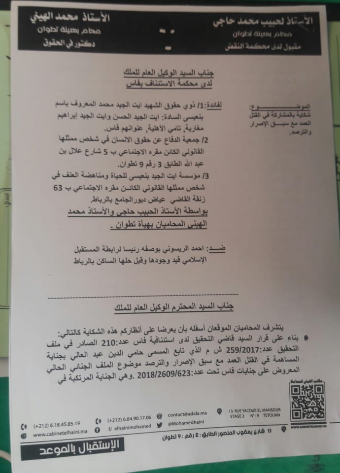 الفرقة الوطنية تدخل على خط اتهام الريسوني بالمساهمة في القتل العمد (وثيقة)