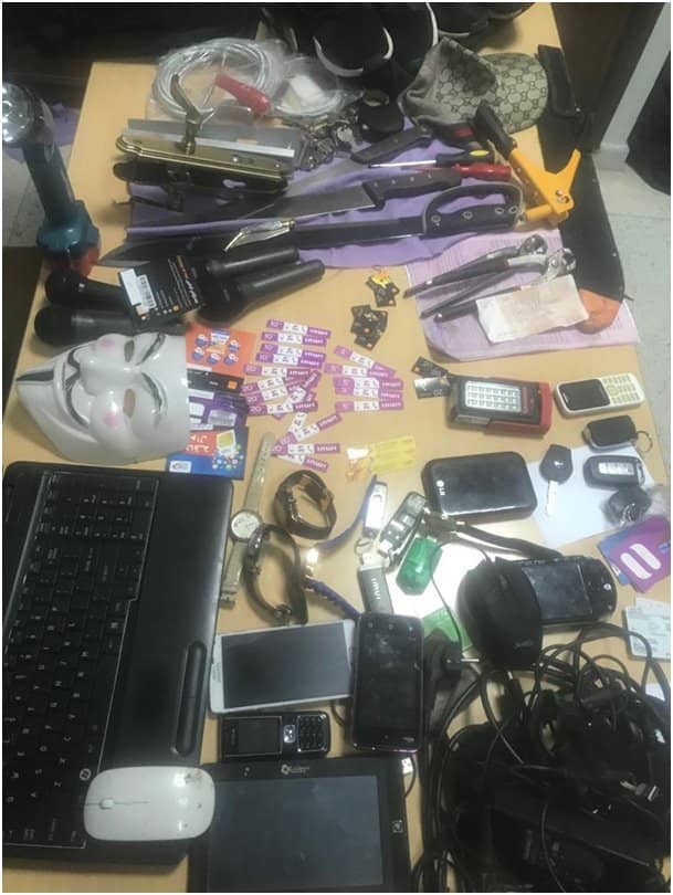 وذكر بلاغ للمديرية العامة للأمن الوطني أن إجراءات البحث قد أوضحت ضلوع المشتبه بهم في ارتكاب مجموعة من عمليات السرقة التي تستهدف المحلات المهنية المذكورة عن طريق الكسر، كما أسفرت إجراءات التفتيش عن حجز معدات وأدوات تستعمل في ارتكاب هذه الأنشطة الإجرامية، وهي أقنعة ومنظار ليلي ومفاتيح مزورة وأدوات حديدية للكسر وأسلحة بيضاء من مختلف الأحجام، بينما تم استرجاع مجموعة من العائدات الإجرامية، ممثلة في مبالغ مالية وساعات يدوية وأجهزة معلوماتية، علاوة على حجز سيارتين.