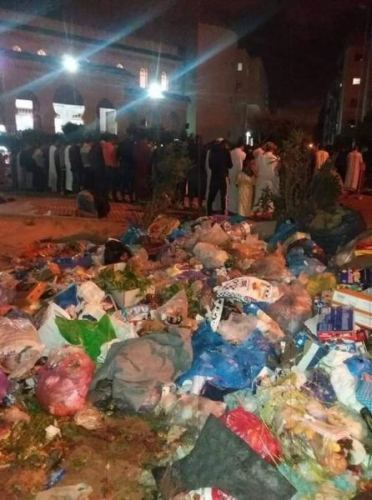 وانتقد نشطاء على مواقع التواصل السلطات المحلية بسبب تقصيرها في تنظيف المكان قبل انطلاق صلاة التراويح.