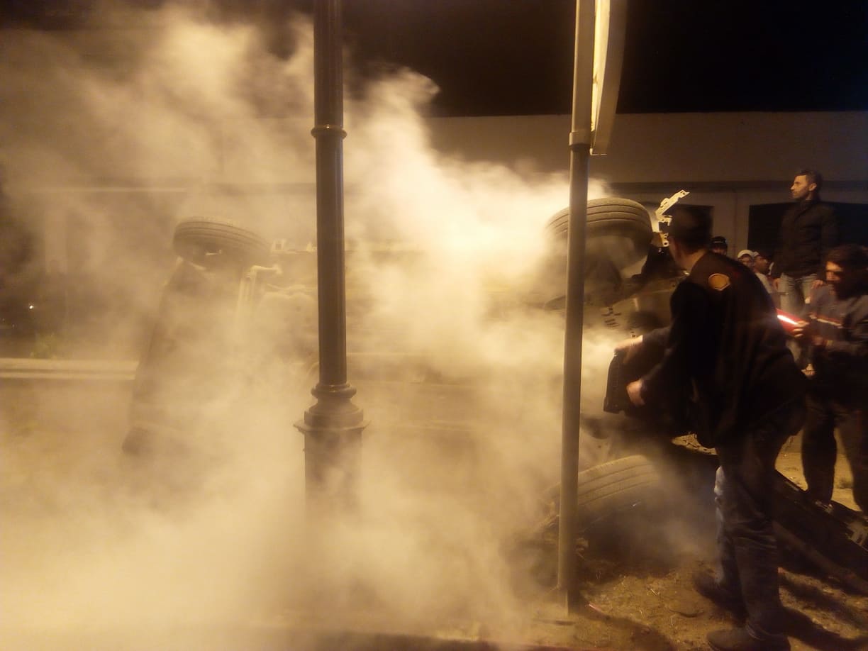 هذا، وحضرت العناصر الأمنية الى عين المكان للقيام بالمتعين ازاء حوادث من هذا القبيل، علما أن دخان أبيض كثيف خرج من عادم السيارة عقب الحادثة.