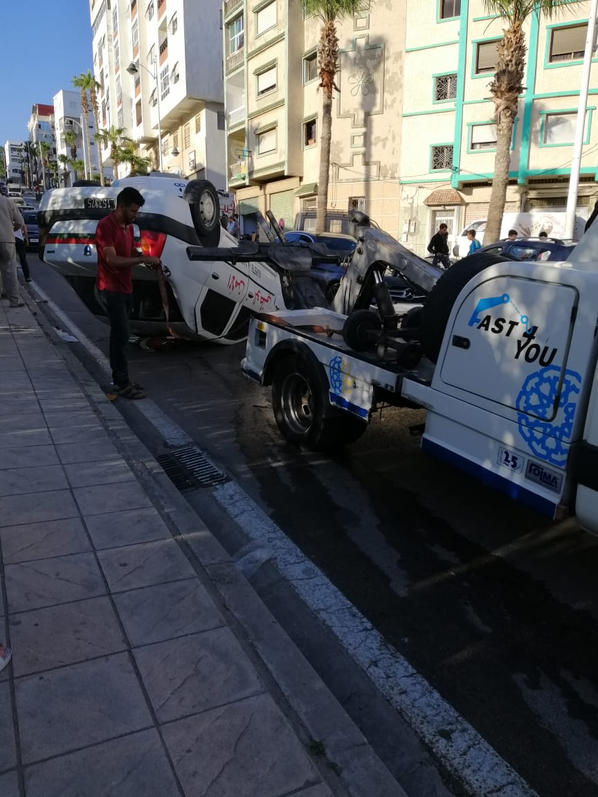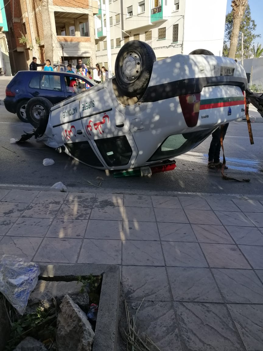 انقلاب سيارة الأمن الوطني في مدينة تطوان بسبب "الديباناج" (صور)