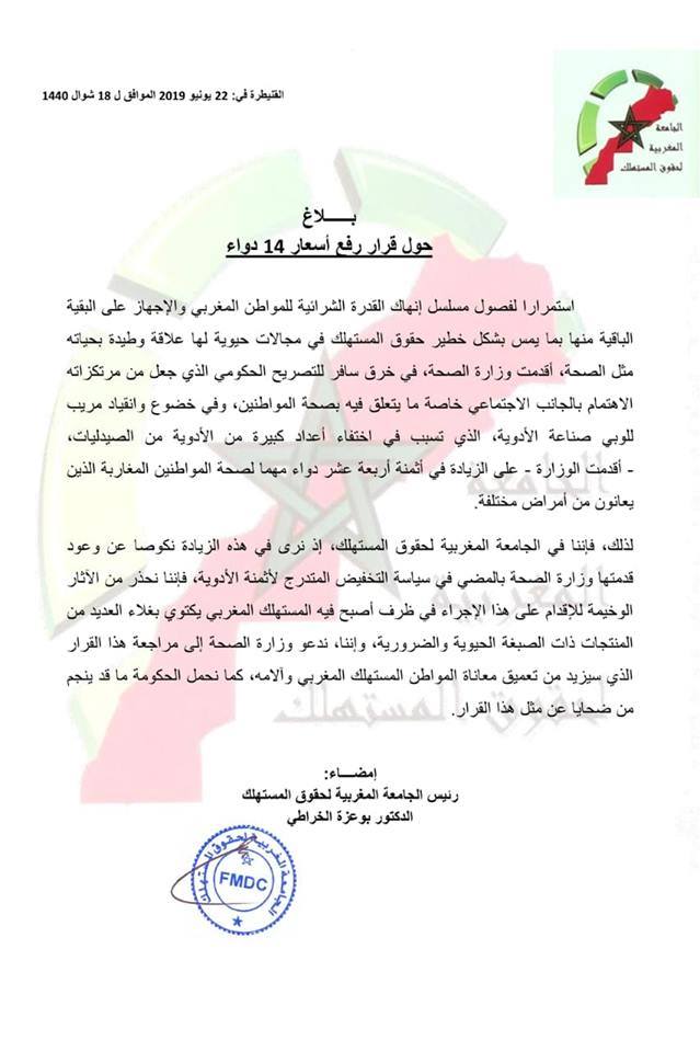 واعتبرت الجامعة في بلاغ لها ، أن "هذه الزيادات، تمثل نكوصا عن الوعود التي قدمتها وزارة الصحة بالمضي في سياسة التخفيض المتدرج لأثمنة الأدوية"، محذرة من "الآثار التي يمكن أن يخلفها هذا الإجراء، لتسببه في تعميق معاناة المستهلكين المكتوين بغلاء العديد من المنتجات ذات الصبغة الحيوية"، يضيف البلاغ.