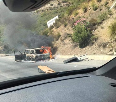 وحسب شهود عيان، فإن ألسنة النيران شبت في البداية في محرك السيارة قبل أن تنتقل إلى الداخل وتأتي عليها بشكل كامل.