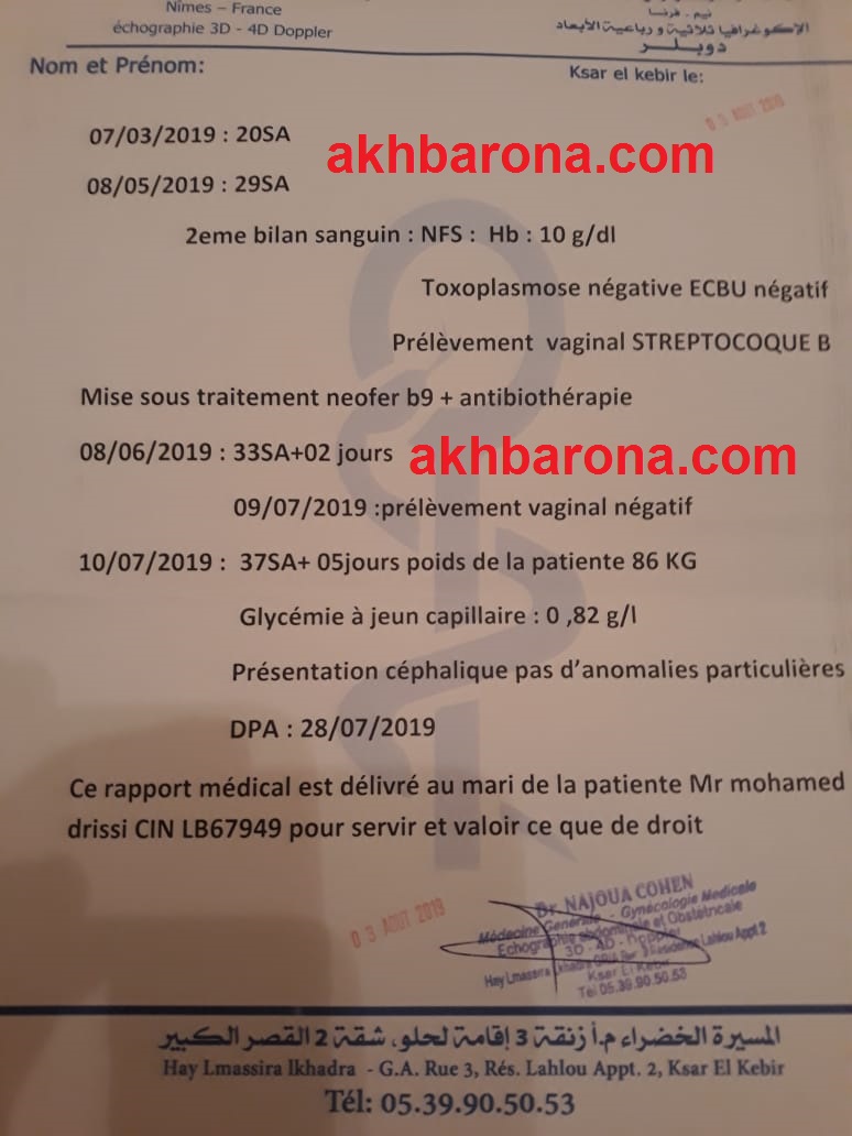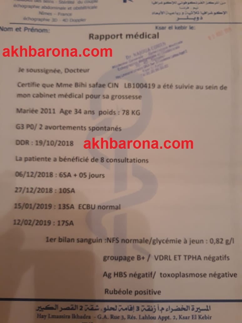 جديد ملف وفاة أستاذة القصر الكبير و"أخبارنا" تنفرد بنشر تقرير طبي يثبت تورط مصحة خاصة مملوكة لأخ وزير وهذا ما قاله زوج المتوفية