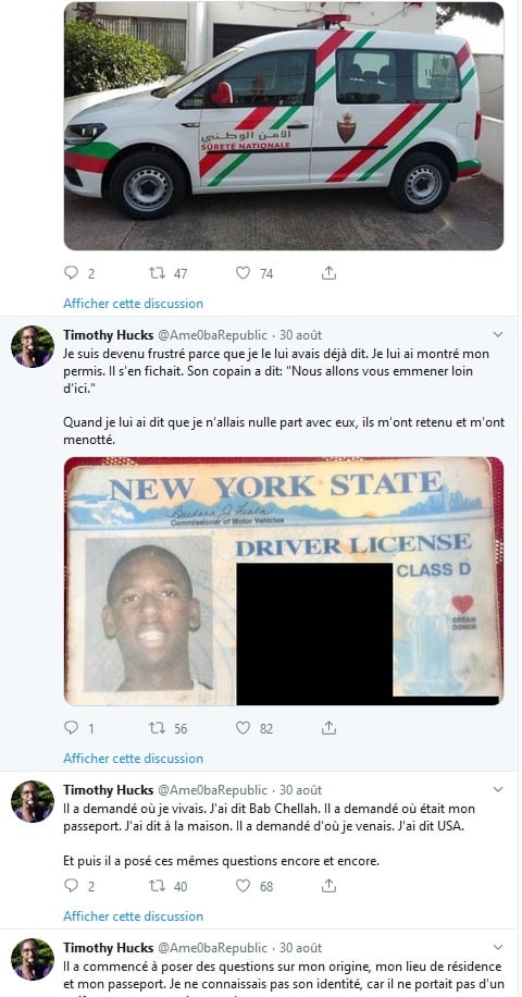 السائح المذكور قال أنه غادر الفندق قرب باب شالة لشراء بعض الأغراض، ليتم إيقافه من طرف أحد عناصر الشرطة، فاستفسره عن جنسيته وأجابه أنه أمريكي وقدم له رخصة سياقته الأمريكية، عند ذلك بدأ رجل الأمن بالضحك استهزاء حسب رواية السائح، لأنه لم يصدق أن يكون قادما من أمريكا وبشرته سمراء.