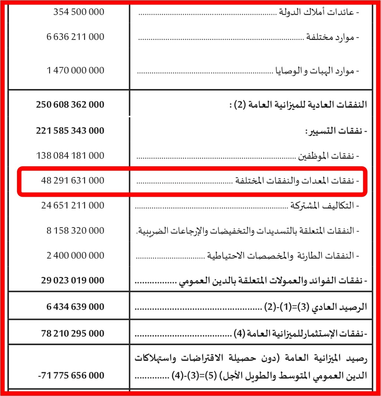 ومن بين النقاط التي أثارت جدلا واسعا بين المهتمين بالشأن السياسي، تخصيص مبلغ ضخم جدا(نفقات المعدات والنفقات المختلفة)، وضع رهن إشارة الوزراء من أجل تجهيز مكاتبهم واقتناء السيارات والسفريات والفنادق وما إلى ذلك… هذا المبلغ الذي حدده مشروع قانون المالية المقبل في حوالي 4830 مليار سنتيم.