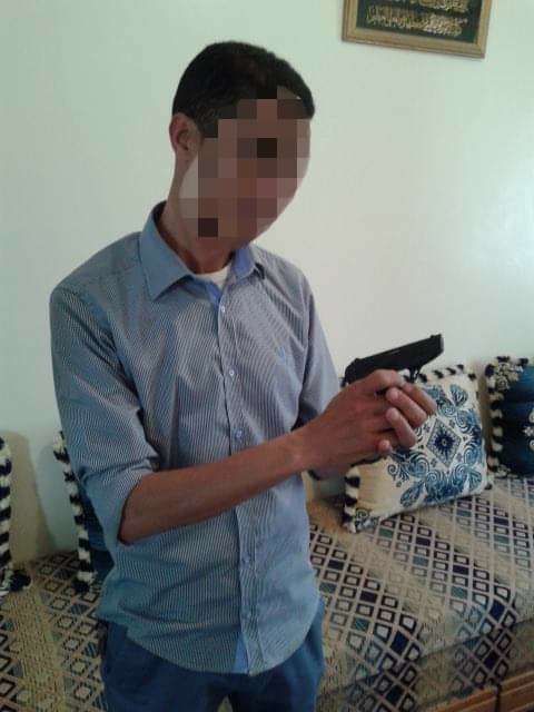 شخص ينشر صوره وهو يحمل مسدسا ومطالب باعتقاله على شاكلة شاب تاوريرت(صور)