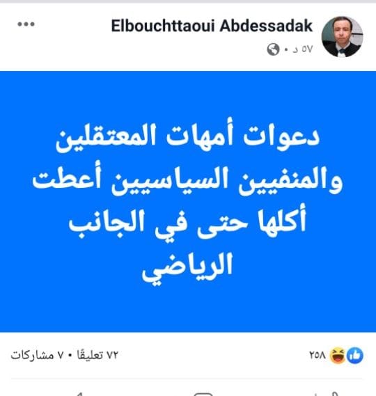 سخر عبد الصادق البوشتاوي، الناشط الحقوقي وأبرز أعضاء هيئة الدفاع عن معتقلي حراك الريف، من هزيمة البطل المغربي في رياضة الكيك بوكسينغ بدر هاري.