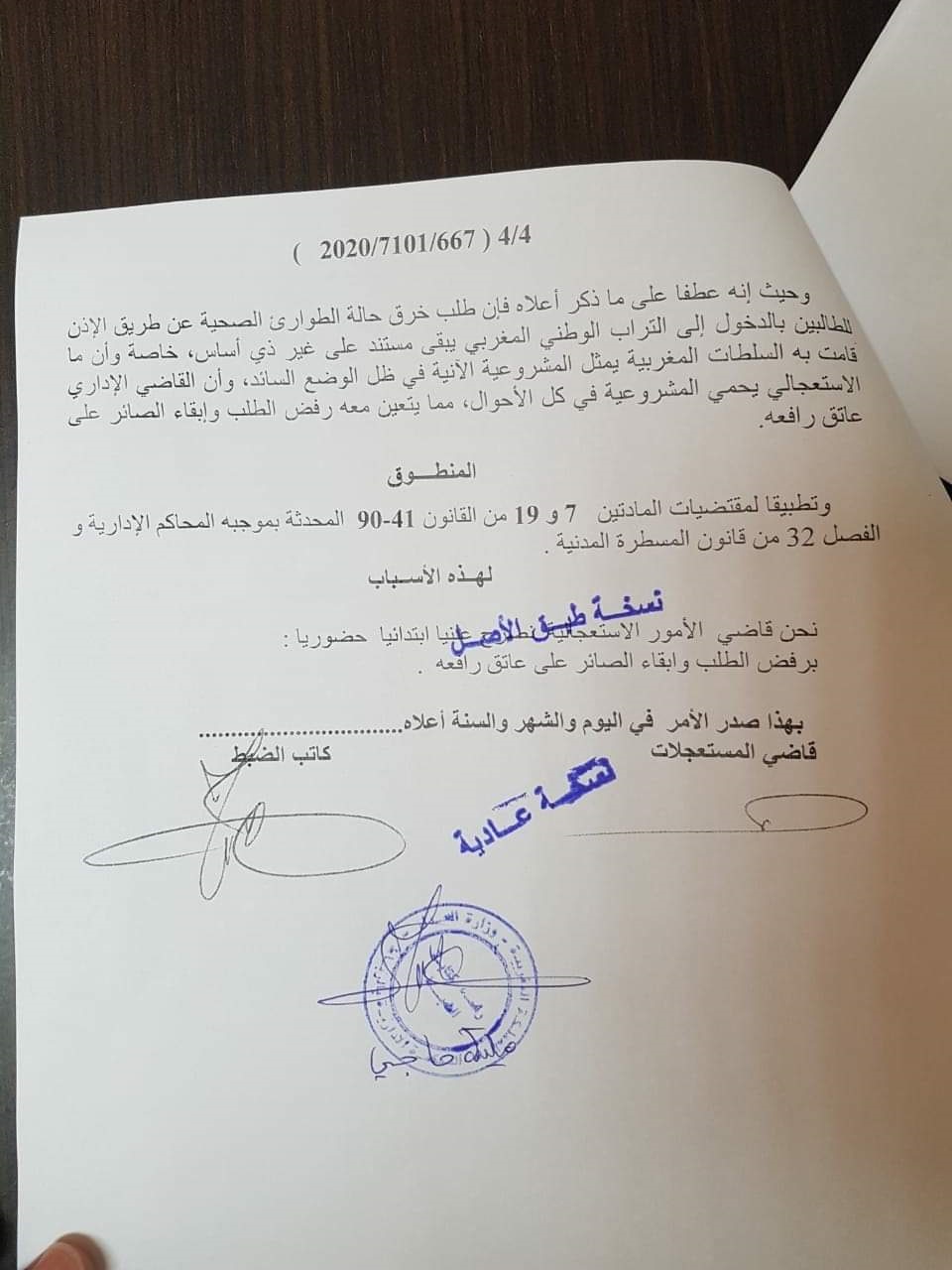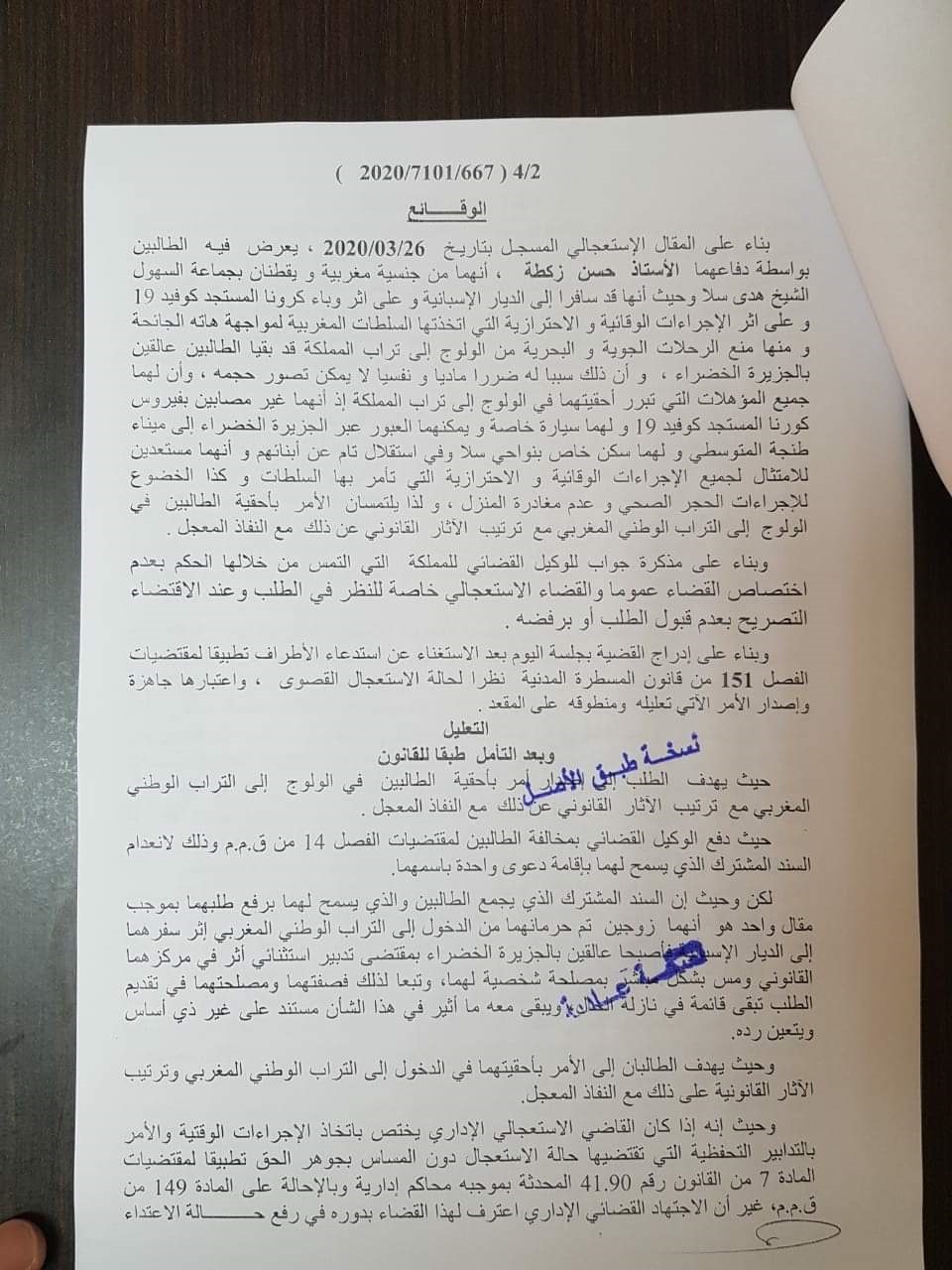 أصدرت المحكمة الإدارية بالرباط يوم أمس الثلاثاء 31 مارس 2020، قرارا يقضي برفض طلب زوجين مغربيين بالعودة إلى المغرب من إسبانيا.
