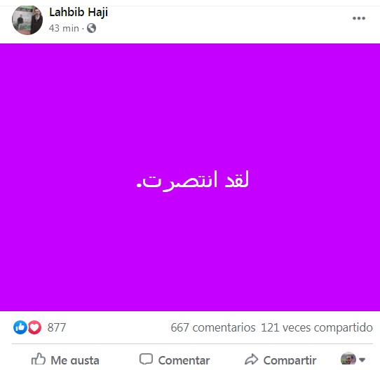 هذا، وكتب الحبيب حجي على صفحته الشخصية بالفيسبوك قبل قليل عبارة " لقد انتصرت"، في إشارة إلى النبأ السار.