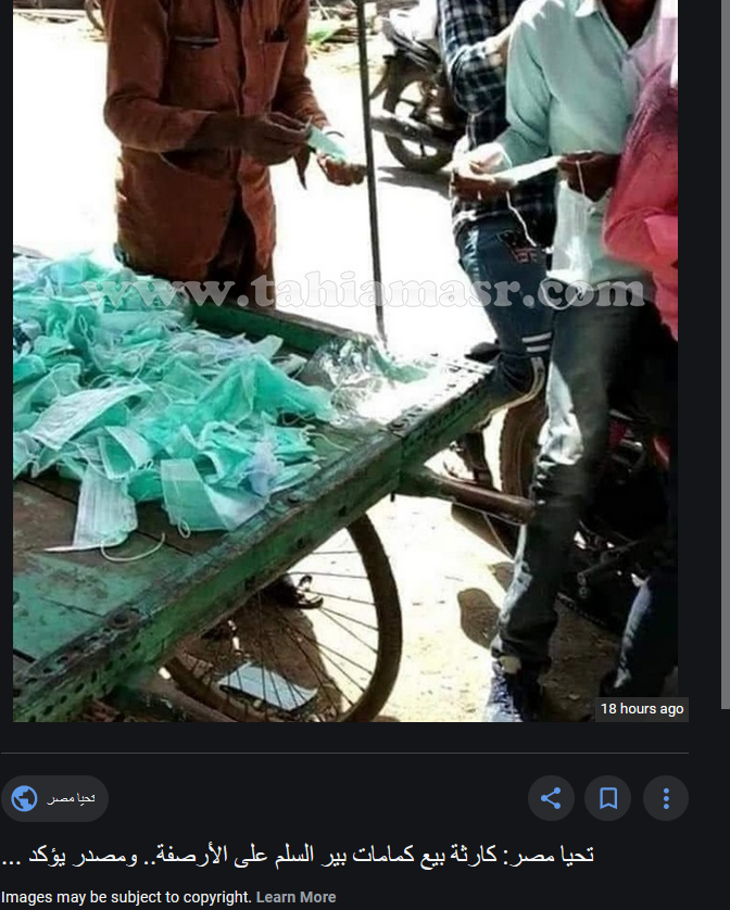 حقيقة صورة بيع الكمامات على عربة مجرورة بأحد الأحياء الشعبية