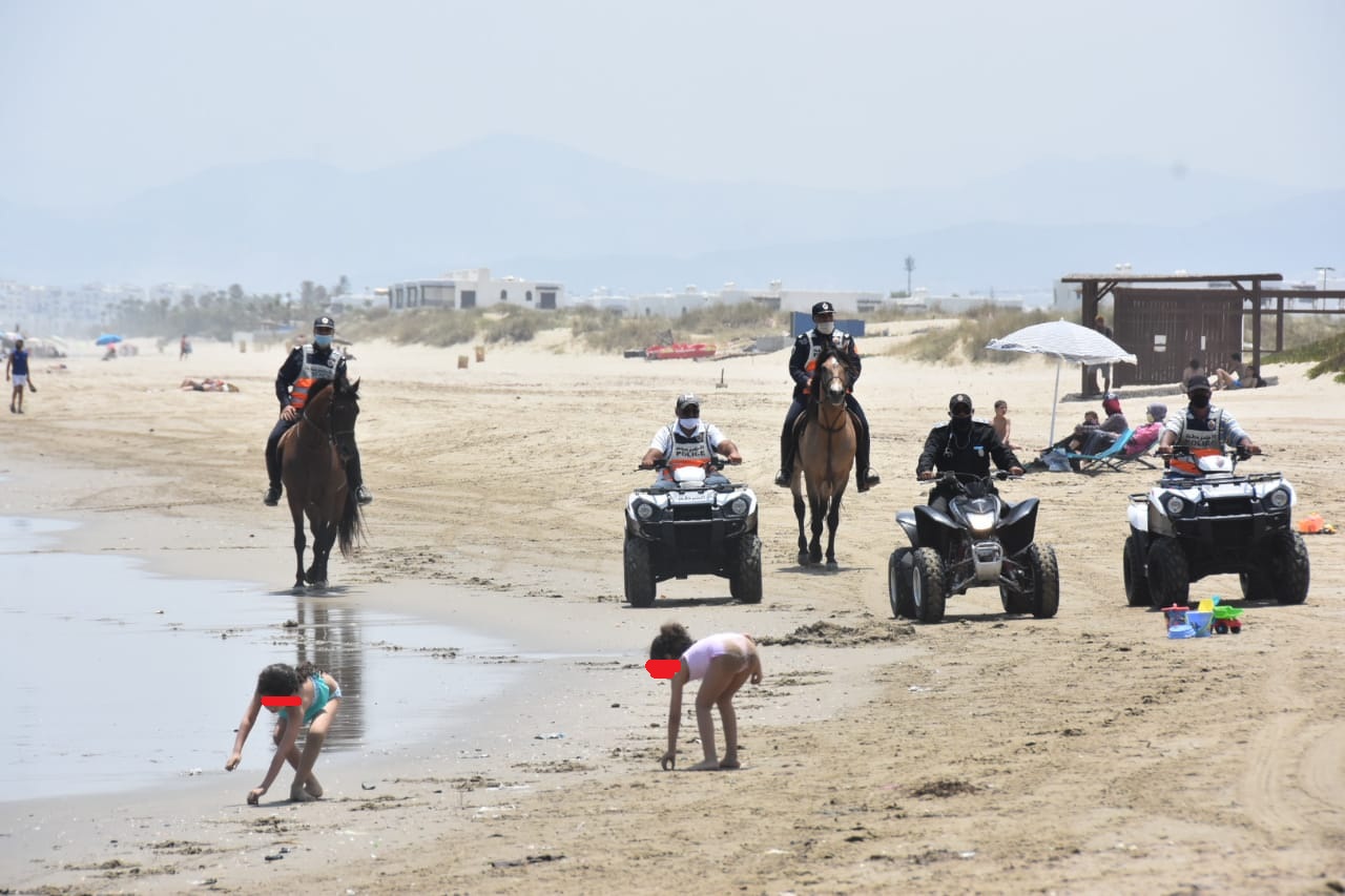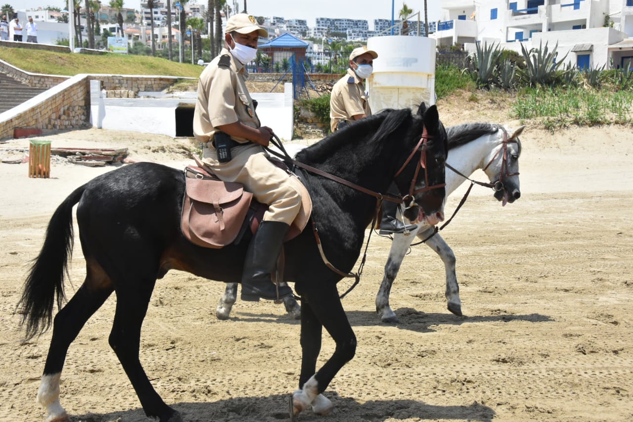 وشوهدت صبيحة هذا اليوم على طول الشريط الساحلي، دوريات تضم السلطات المحلية والمصالح الأمنية والقوات المساعدة، والخيالة وعناصر أمنية على متن "الكواتز"، يتواصلون مع المواطنين ويحثونهم على الالتزام بالقوانين الجاري بها العمل.