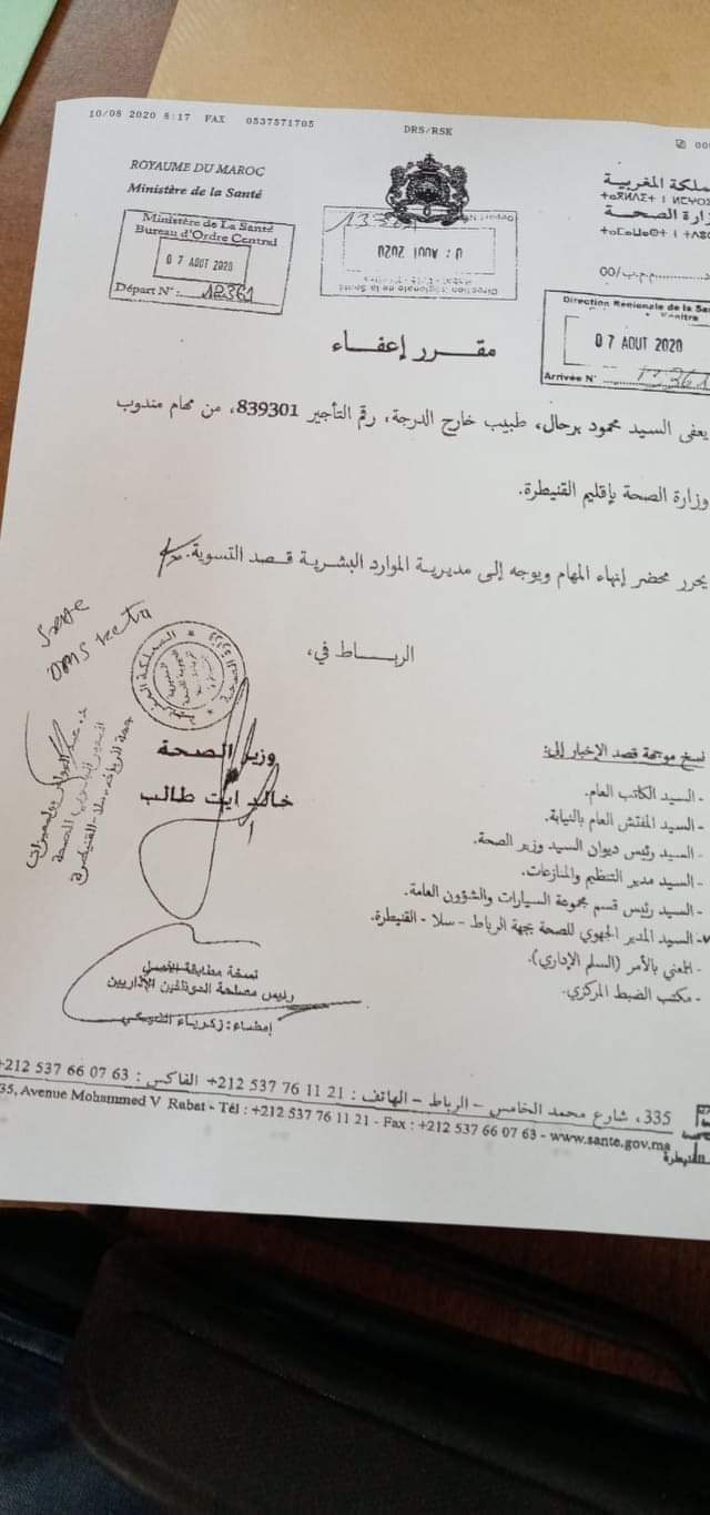 رسميا بالوثيقة: إعفاء المندوب الإقليمي للصحة بالقنيطرة
