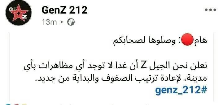 انشقاقات داخل حركة "جيل زد".. تيار يعلن إلغاء مسيرات اليوم الاحتجاجية وآخر يدعو إليها بعد تصويت مؤيد
