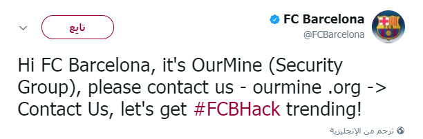 و سرعان ما تدارك برشلونة الموقف ليعلن اختراق هاكر الحسابين الرسميين للنادى الإسباني على الموقعين المذكورين.