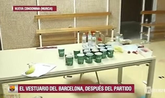 نشرت وسائل إعلام إسبانية وبريطانية مجموعة من الصور الفاضحة من داخل غرفة تبديل ملابس برشلونة، بعد لقائهم أمام ريال مورسيا في كأس ملك إسبانيا الثلاثاء الماضي، والذي حسمه البرسا لصالحه 3-0.