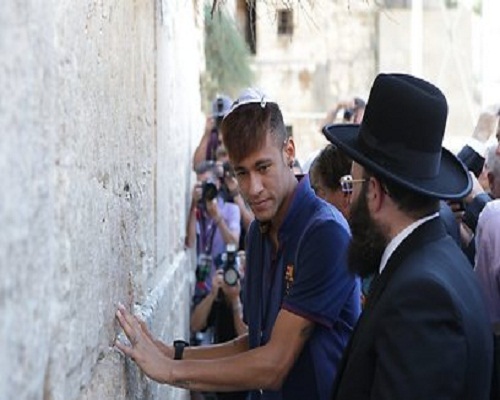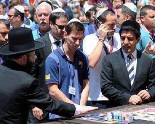 شاهد بالصور – نجوم برشلونة يرتدون "زى اليهود" و يصلون امام حائط "المبكى