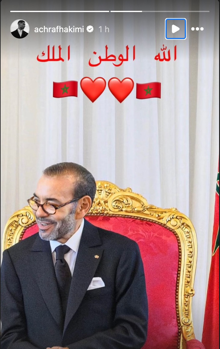 من جانبه، عبر أشرف حكيمي، نجم باريس سان جيرمان الفرنسي، عن فخره بهذا القرار، حيث نشر عبر حسابه على إنستغرام صورة للملك محمد السادس مرفقةً بعبارة: "الله، الوطن، الملك".