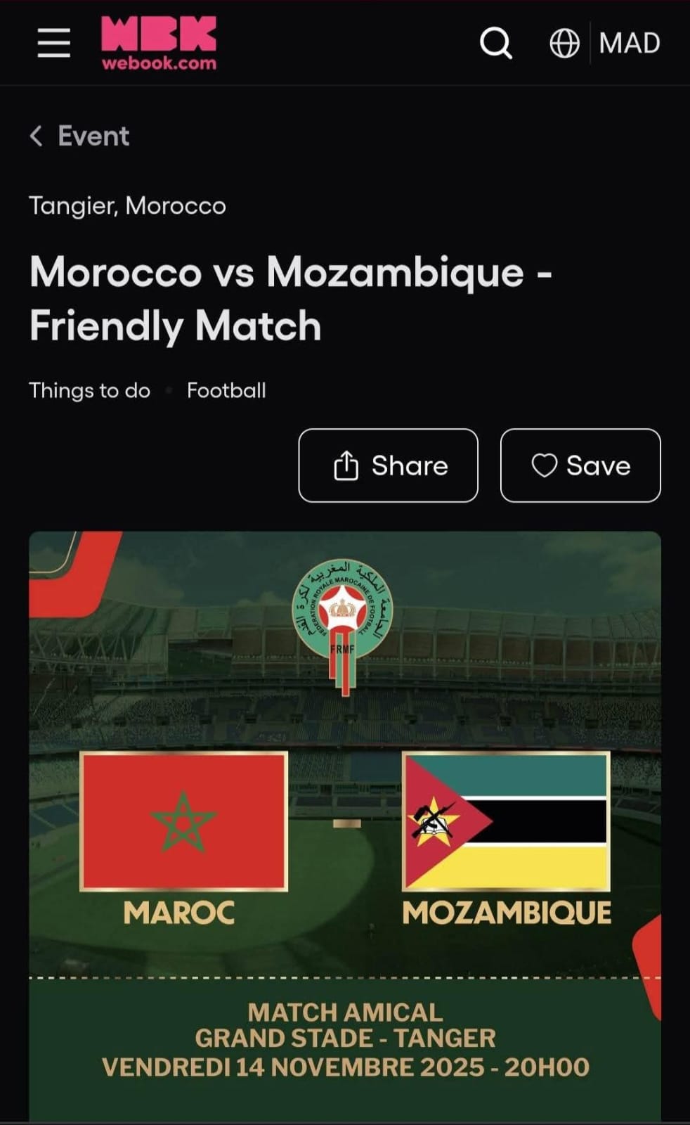 تشهد عملية بيع تذاكر المباراة الودية التي يرتقب أن تجمع بين المنتخب المغربي ونظيره الموزمبيقي، يوم الجمعة 14 نونبر 2025، إقبالًا قياسيًا غير مسبوق، حيث تجاوز عدد المنتظرين في الطابور الإلكتروني عبر موقع webook.com حاجز مليون و250 ألف شخص.