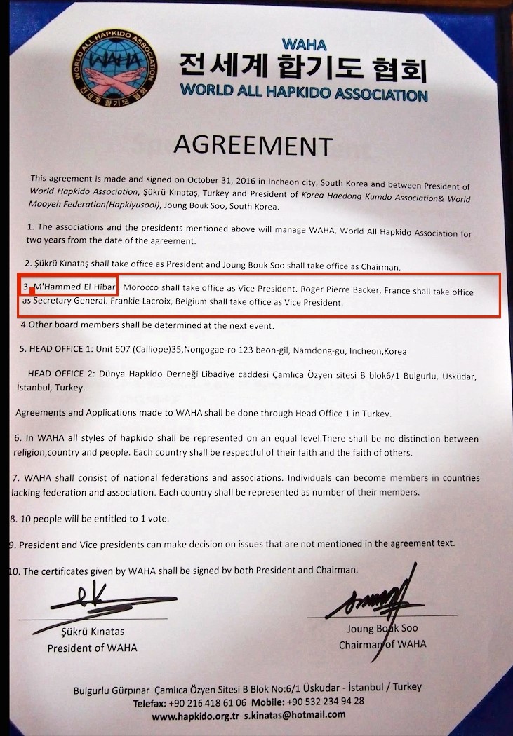 خلال الاجتماع الذي عقد أول أمس الاثنين بكوريا الجنوبية ، تم تعيين الأستاذ المغربي محمد الحباري ، مدير أكاديمية فنون الحرب بالصخيرات ، نائبا أولا لرئيس الجامعة الدولية لرياضة الهابكيدو بجميع أساليبه ، فيما تم تعيين التركي شكري كنطاس " رئيس للجامعة الدولية .