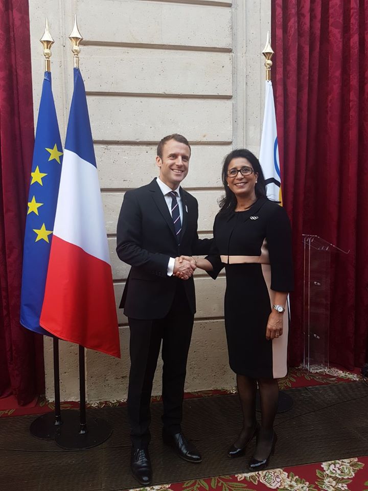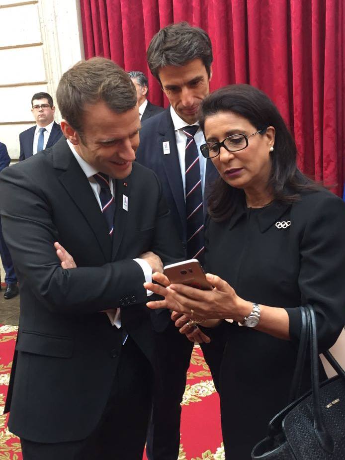 وكان ضمن اللجنة الأولمبية، للقاء الرئيس الفرنسي، المغربية نوال المتوكل البطلة الأولمبية السابقة وعضو اللجنة المذكورة.