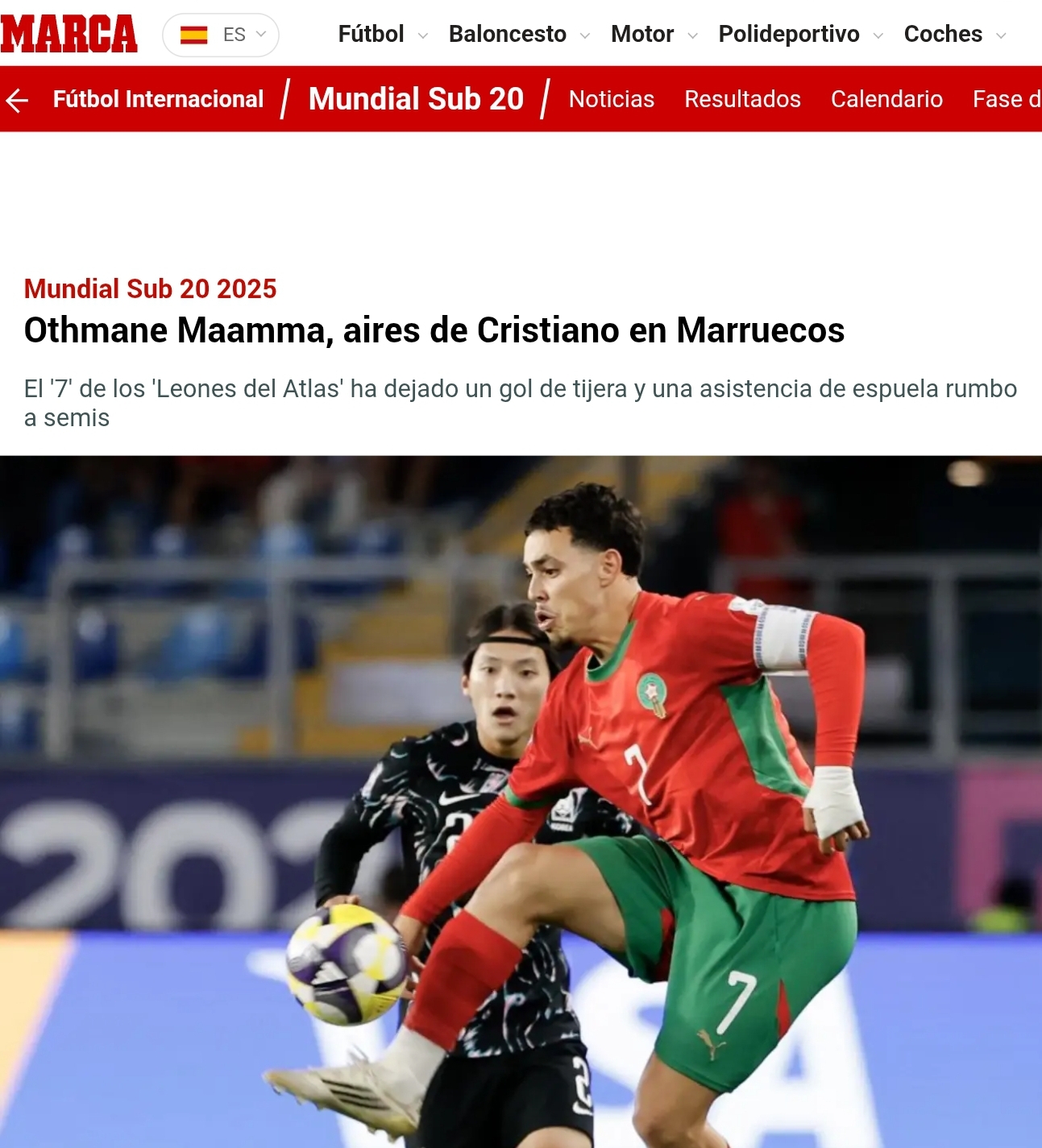 صحيفة "ماركا" الإسبانية تشبِّه نجم الأشبال "عثمان معما" بكريستيانو رونالدو وتعتبره "اكتشاف المونديال بلا منازع"