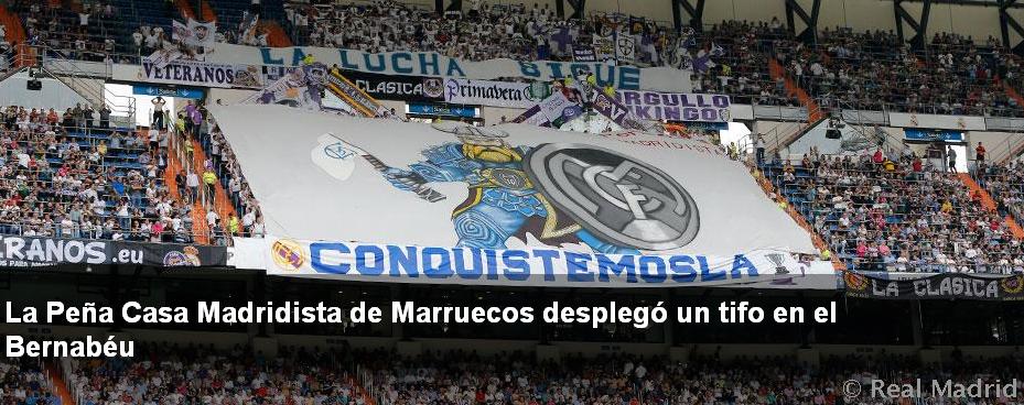 رفعت رابطة مشجعي نادي ريال مدريد الإسباني بالدار البيضاء (بينا كازا مدريديستا)، مساء أمس السبت، "تيفو" رائع أبهر جماهير ملعب "سانتياغو برنابيو" ، خلال ريال مدريد ضد نادي ملقة (0-0) برسم الدورة 6 من البطولة الإسبانية.