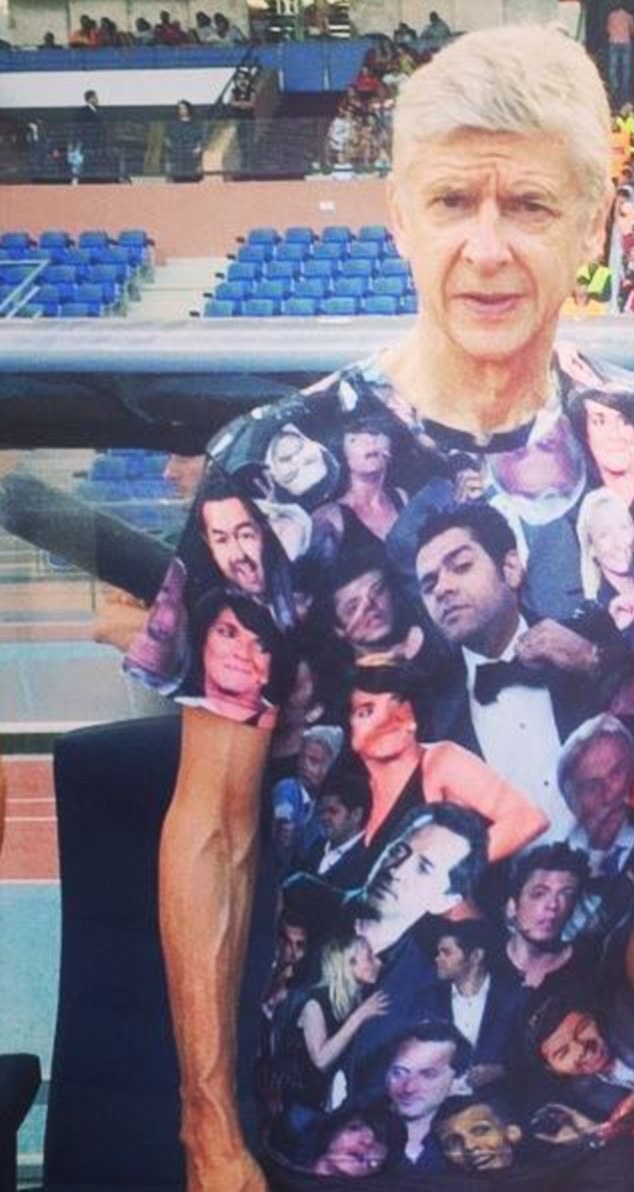 وظهر فينجر في مراكش بقميص عليه ملصقات لنجوم الكوميديا حول العالم منهم المغربيان جمال دبوز وجاد المالح.