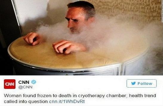 و نشرت صفحة القناة الإخبارية على "تويتر" صورة النجم الفرنسي على خبر وفاة امرأة نتيجة تعرضها لجرعة مطولة من العلاج بالتبريد في ولاية نيفادا الأمريكية.