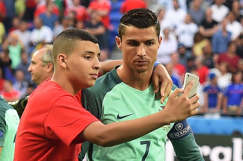 تسلل أحد ملتقطي الكرات ، أكدت مصادر أنه ينحدر من أصل مغربي ، إلى الملعب لالتقاط صورة مع البرتغالي كريستيانو رونالدو ، نجم ريال مدريد وقائد منتخب البرتغال ، قبل انطلاق مباراة الدور نصف النهائي لبطولة كأس أمم أوروبا يوم أمس أمام ويلز ، و التي انتهت بتأهل أصدقاء كريستيانو الى النهائي الحلم بهدفين لصفر.