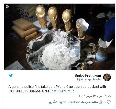 بالصورة.. تهريب مخدرات داخل كأس العالم