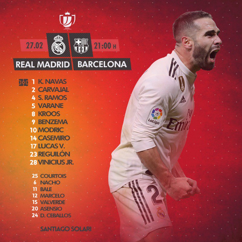وفي ما يلي التشكيلة الرسمية لريال مدريد وبرشلونة في اللقاء الذي سينطلق في الساعة 20.00 بتوقيت غرينتش: