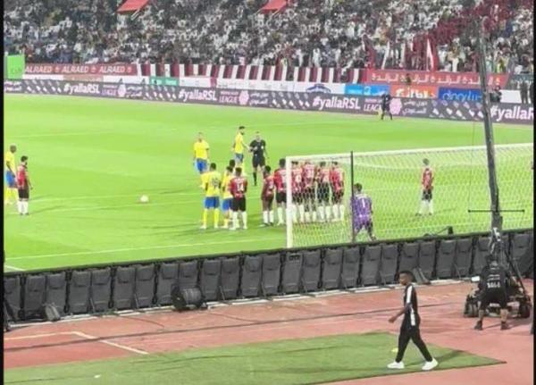 وثق أحد المشجعين خلف المرمى لقطة طريفة بالدوري السعودي، حين ضربت تسديدة قوية لنجم النصر كريستيانو رونالدو، رأس أحد المصورين، الذي ترنح وكاد يفقد توازنه من قوة الضربة.