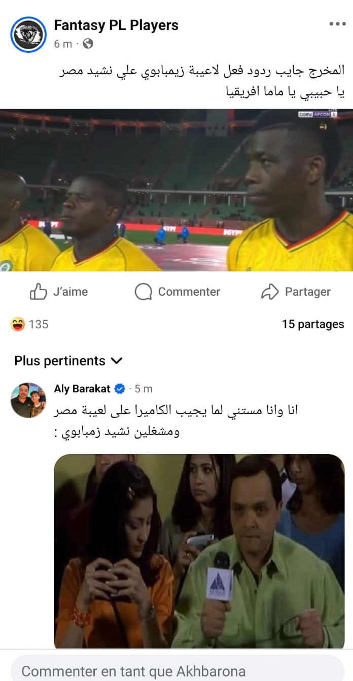 أشعلت مباراة المنتخب المصري أمام زيمبابوي، برسم منافسات كأس إفريقيا للأمم، موجة غضب عارمة على مواقع التواصل الاجتماعي، بعدما تحولت لحظة عزف النشيد الوطني المصري إلى ما وصفه المتابعون بـ“الفضيحة الإخراجية” في البث التلفزي للمباراة.