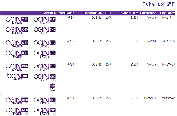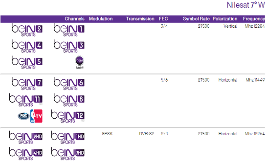 ويعرض موقع "أخبارنا " جميع ترددات قنوات "بي إن سبورت" علي جميع الأقمار التي تبث شبكة قنوات بي إن سبورت ، الجزيرة الرياضية سابقاً ، بالإضافة إلي قائمة أسعار الإشتراك