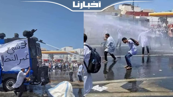 استعمال خـراطـيم المياه في تفريق مسيرة الأطر الصحية بالرباط