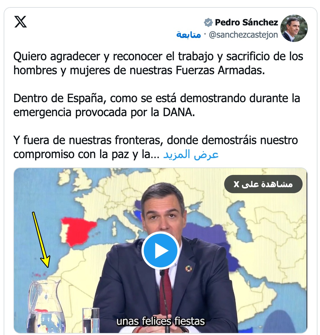 هل الأمر مقصود؟.."سانشيز" يثير جدلا واسعا عقب ظهوره أمام خلفية تحمل خريطة المغرب مبتورة من صحرائه